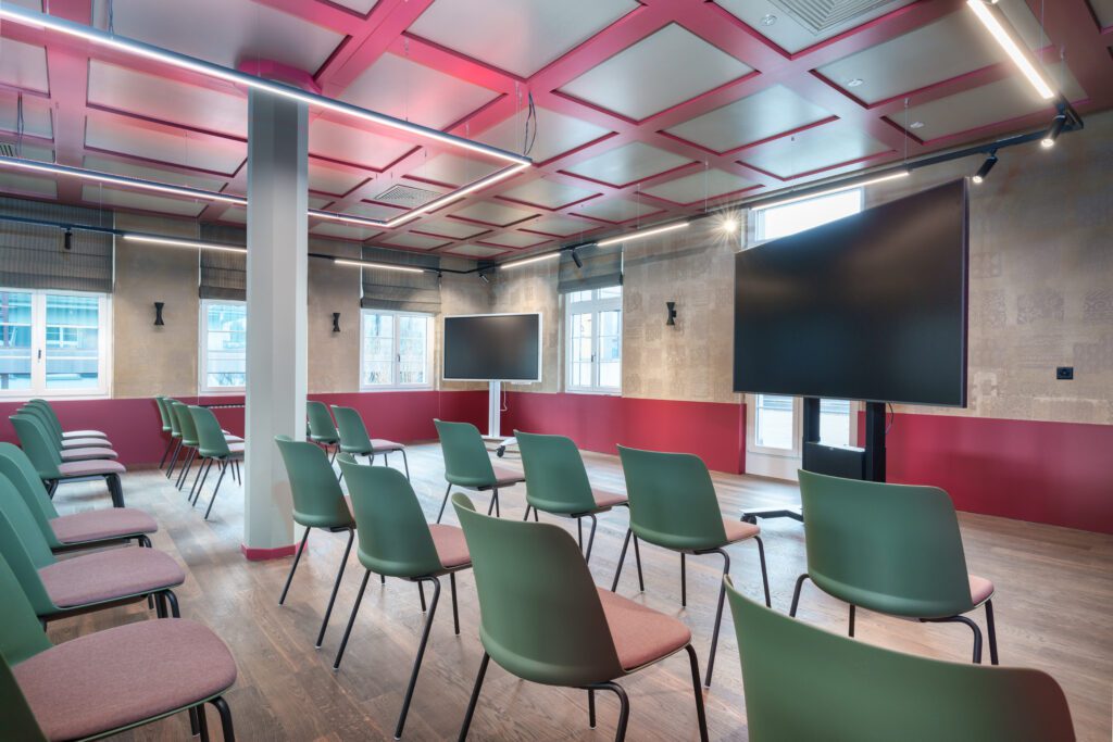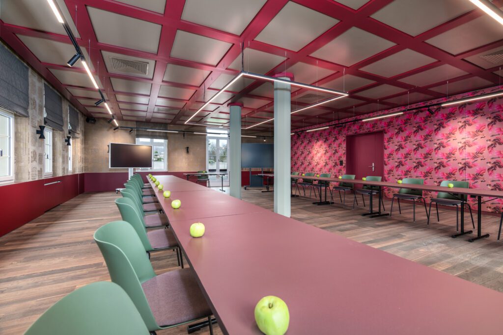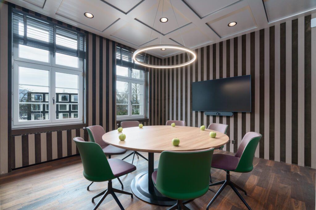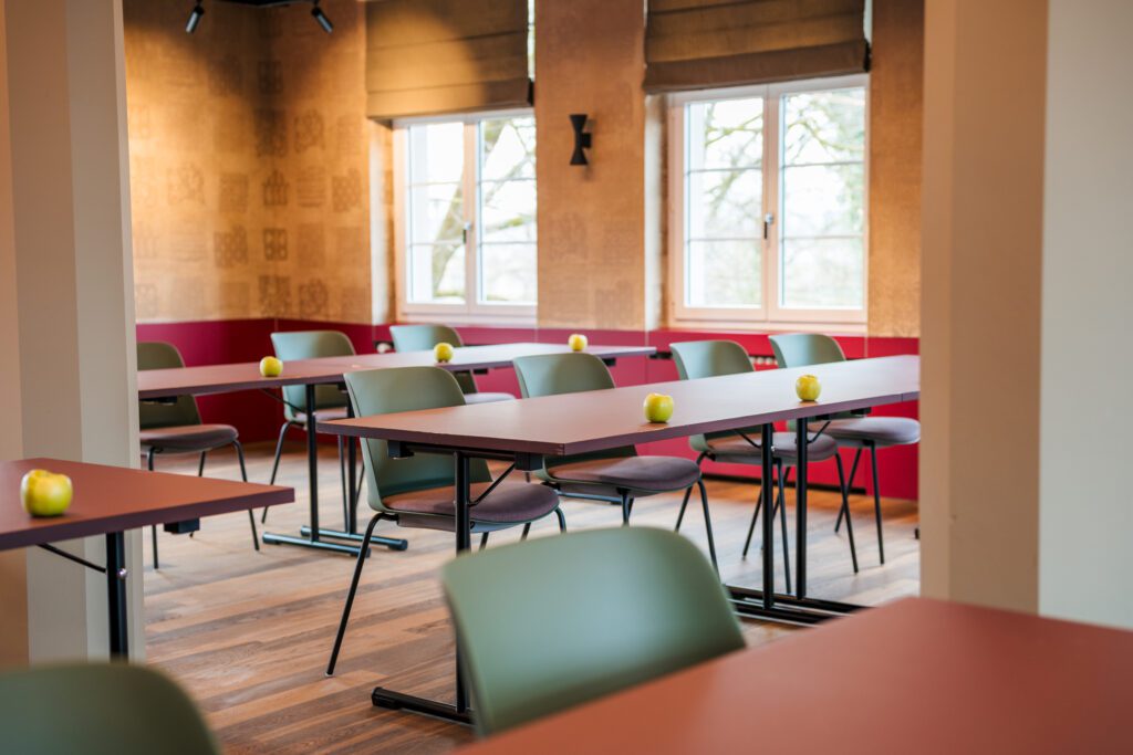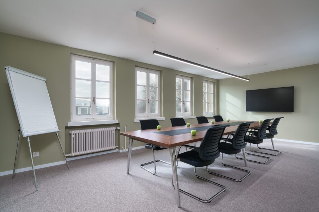 Der grösste Meeting-, Seminar- und Bankettraum «Widnau» bietet Platz für bis zu 50 Personen. Hier finden Sie genügend Platz für Ihre Ideen, zum Feiern, für Workshops und vieles mehr. Der Raum «Heerbrugg» ist ein Boardroom, der sich perfekt für Geschäftsleitungssitzungen, VR Meetings und Meetings eignet. Er bietet Platz für bis zu 8 Personen und ist mit einem professionellen Videokonferenzsystem ausgestattet. Für bis zu 12 Personen eignet sich der Raum «Balgach» ideal für Workshops, Teamsitzungen und Meetings.
